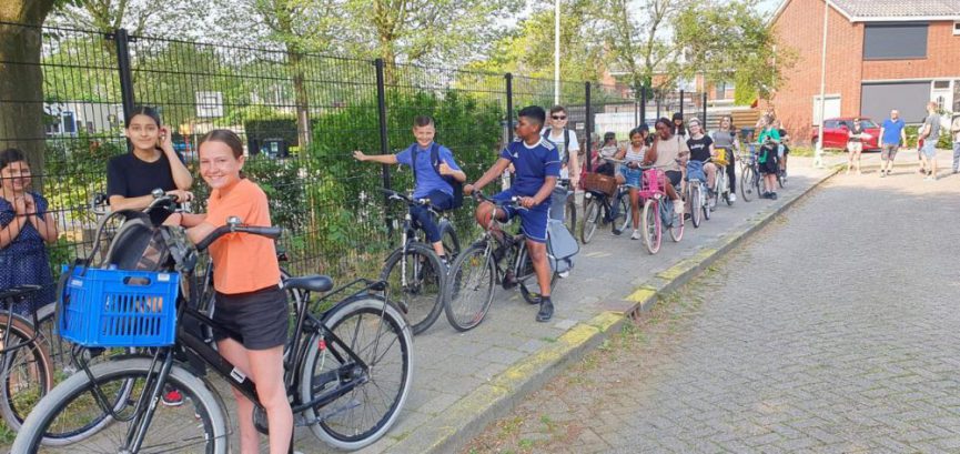 De werkweek van groep 8 begint met een laaaaaaange fietstocht naar het kamphuis.